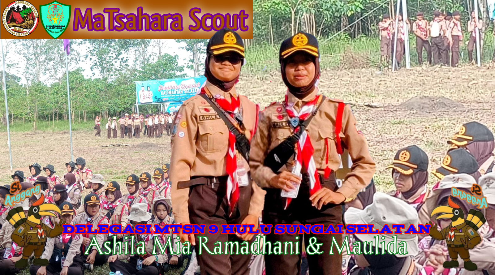 Hulu Sungai Selatan (MTsN 9 HSS) — Dua siswi delegasi MTsN 9 Hulu Sungai Selatan yang tergabung dalam Kontingen Hulu Sungai Selatan mewakili Gerakan Pramuka Kwartir Cabang Hulu Sungai Selatan terus menunjukkan semangat dan kegigihan dalam mengikuti rangkaian kegiatan Jambore Daerah XII Gerakan Pramuka Kwartir Daerah Kalimantan Selatan Tahun 2025, Minggu (14/09/2025).